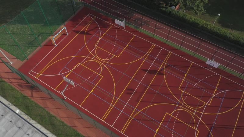 - zewnętrzne boisko wielofunkcyjne (wraz z bieżnią) przystosowane do gry w piłkę ręczną, siatkową, koszykową i tenisa ziemnego,